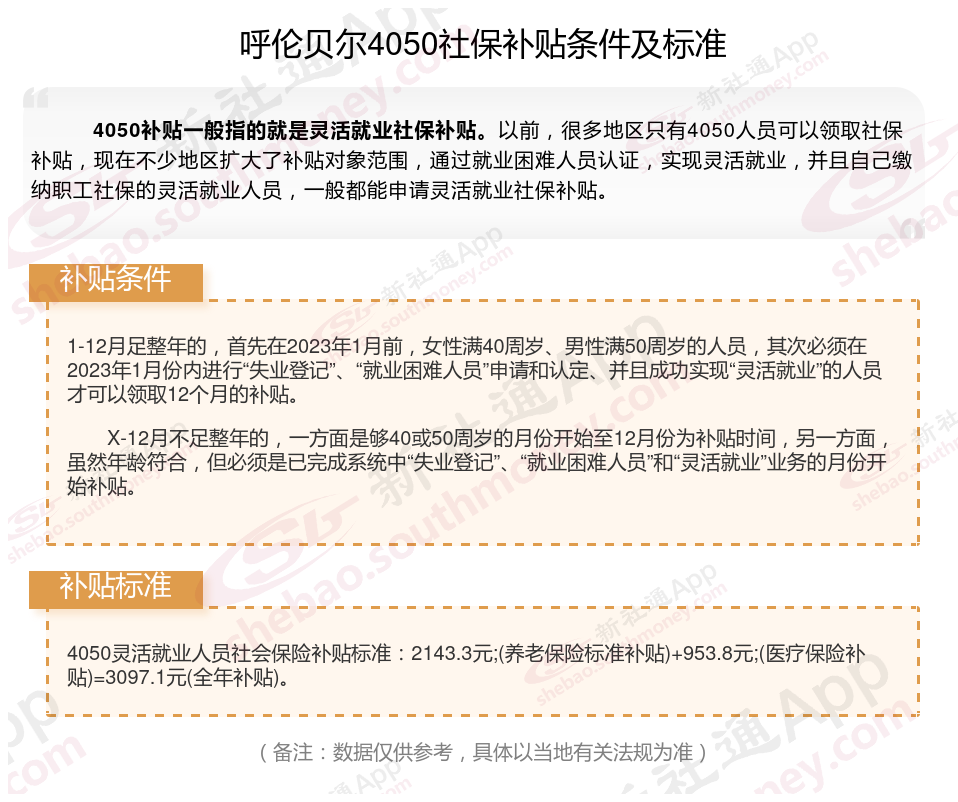 一、2023-2024年呼伦贝尔4050社保补贴标准及条件
