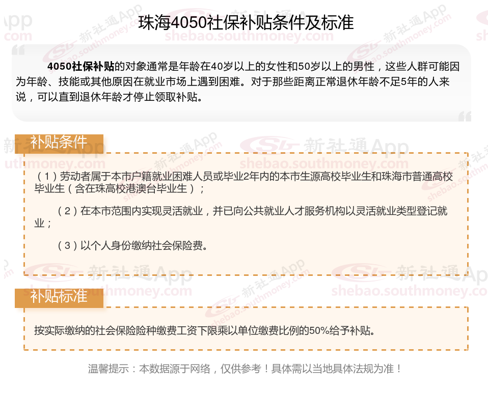 二、2025年珠海4050社保补贴标准(珠海4050灵活就业人员补贴标准是多少钱?珠海2025年4050补贴新规能领多少钱?)