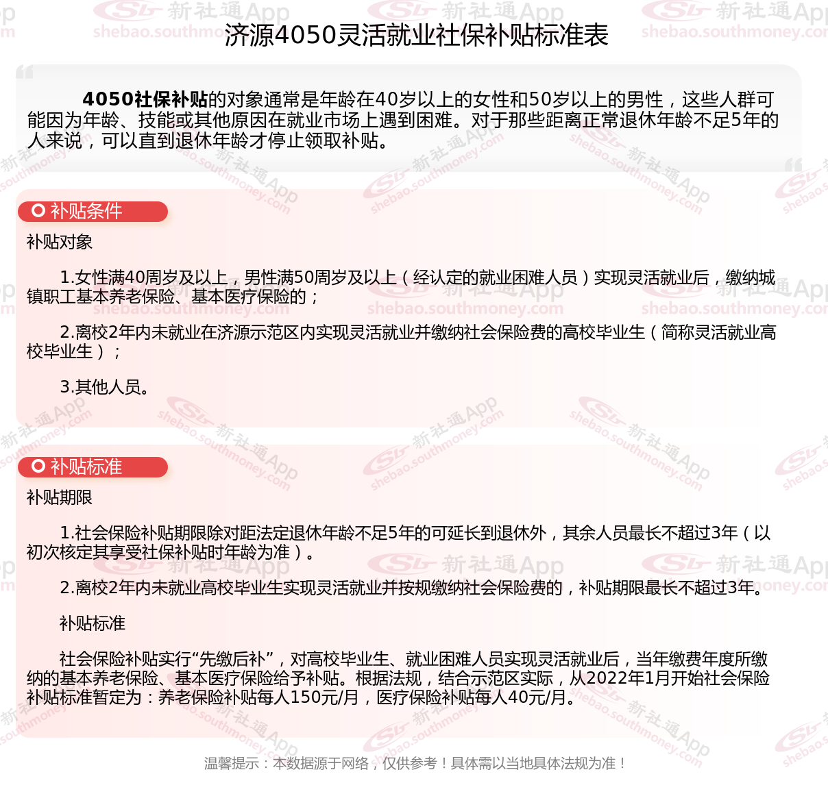 以上就是济源4050灵活就业社保补贴的相关内容,欢迎关注新社通/下载新社通APP了解更多五险一金专业资讯。