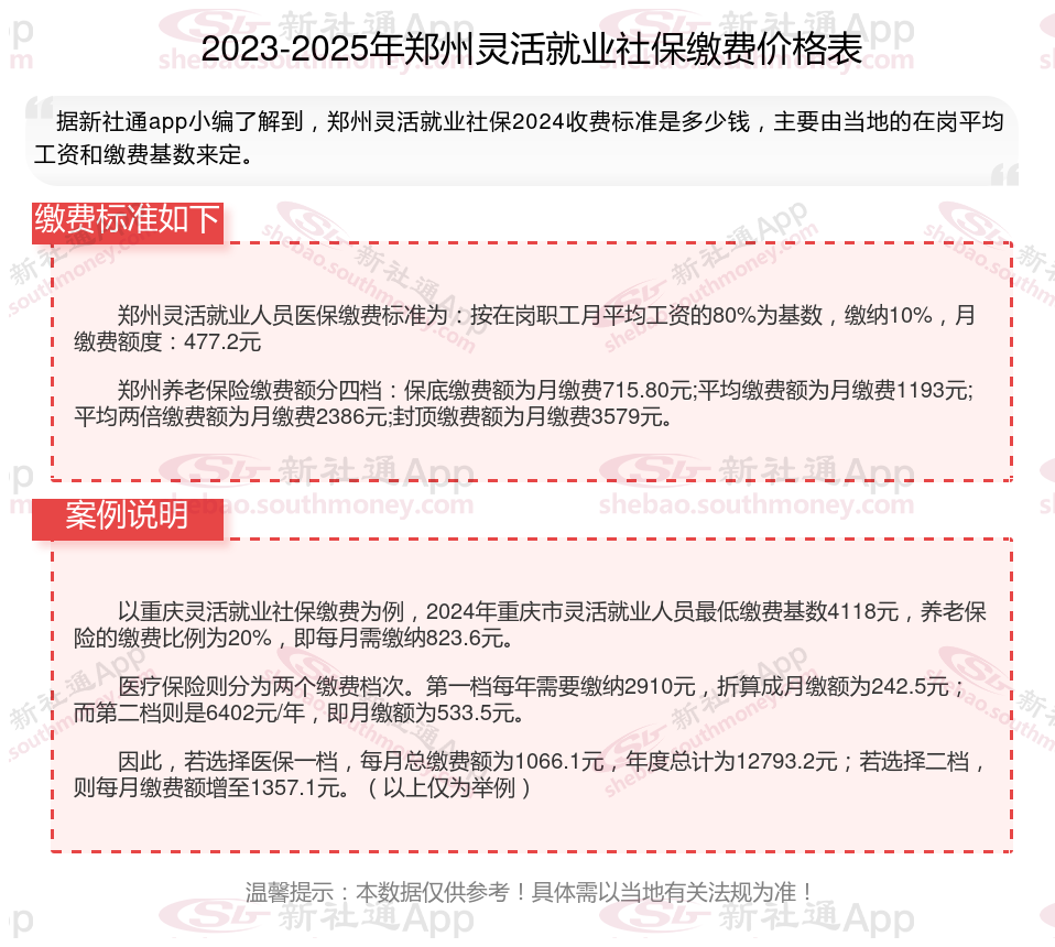 三、郑州2025年灵活就业社保缴费基数及比例最新消息