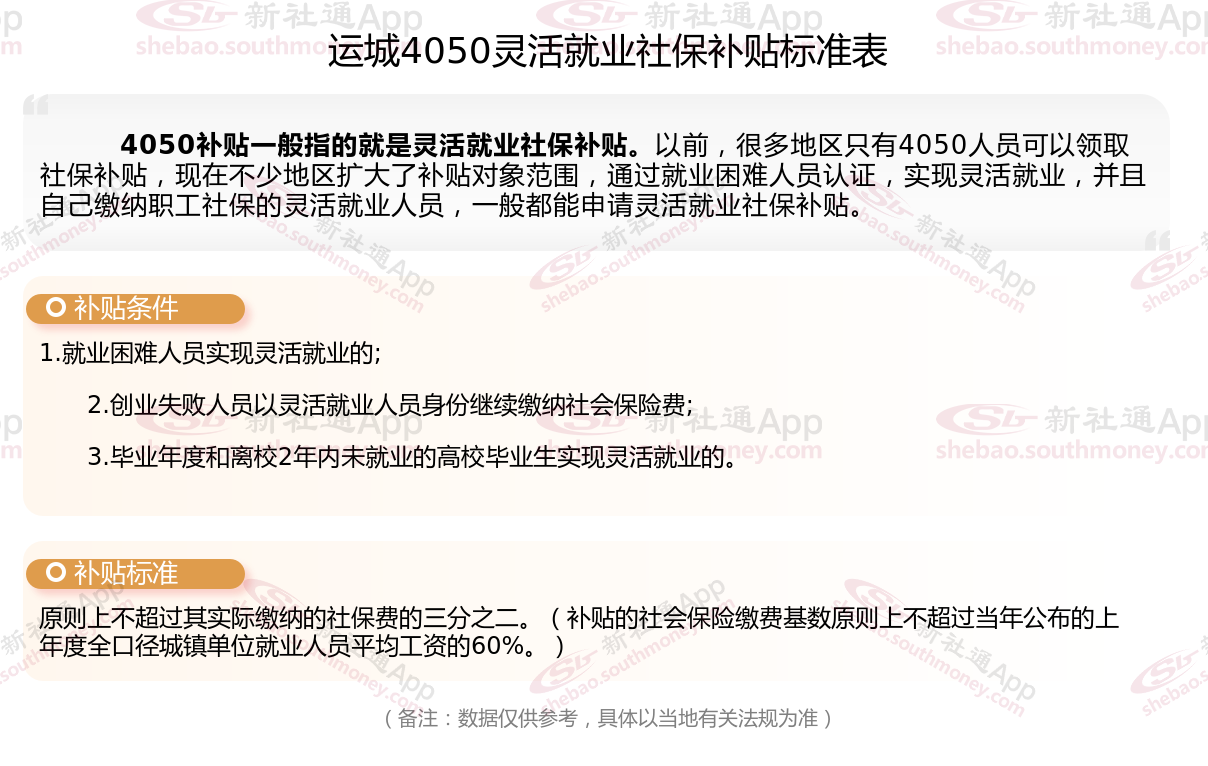 一、2025年运城灵活就业4050社保补贴标准及条件是什么