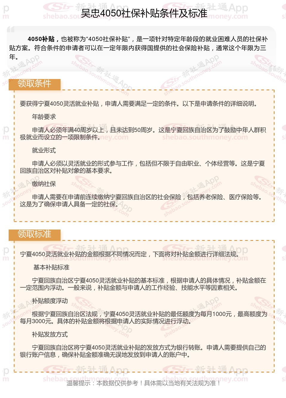 二、吴忠灵活就业4050社保补贴标准2025年(4050社保条件是什么)
