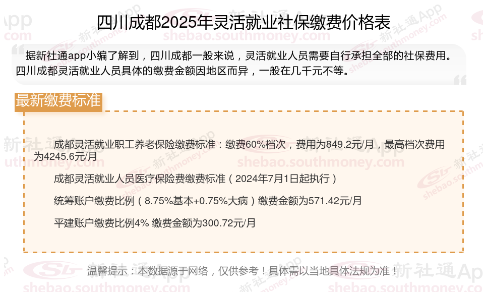 据新社通app数据显示,四川成都企业灵活就业养老保险的缴费基数为:4511元。