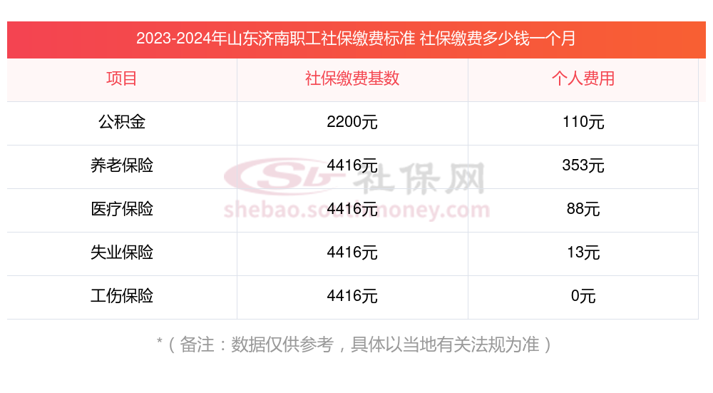 社保缴纳比例一览,社保公司和个人各交多少?下表是2023-2024年山东济南社保费用明细参考,新社通app-社保缴费查询工具提供的最新数据如下: