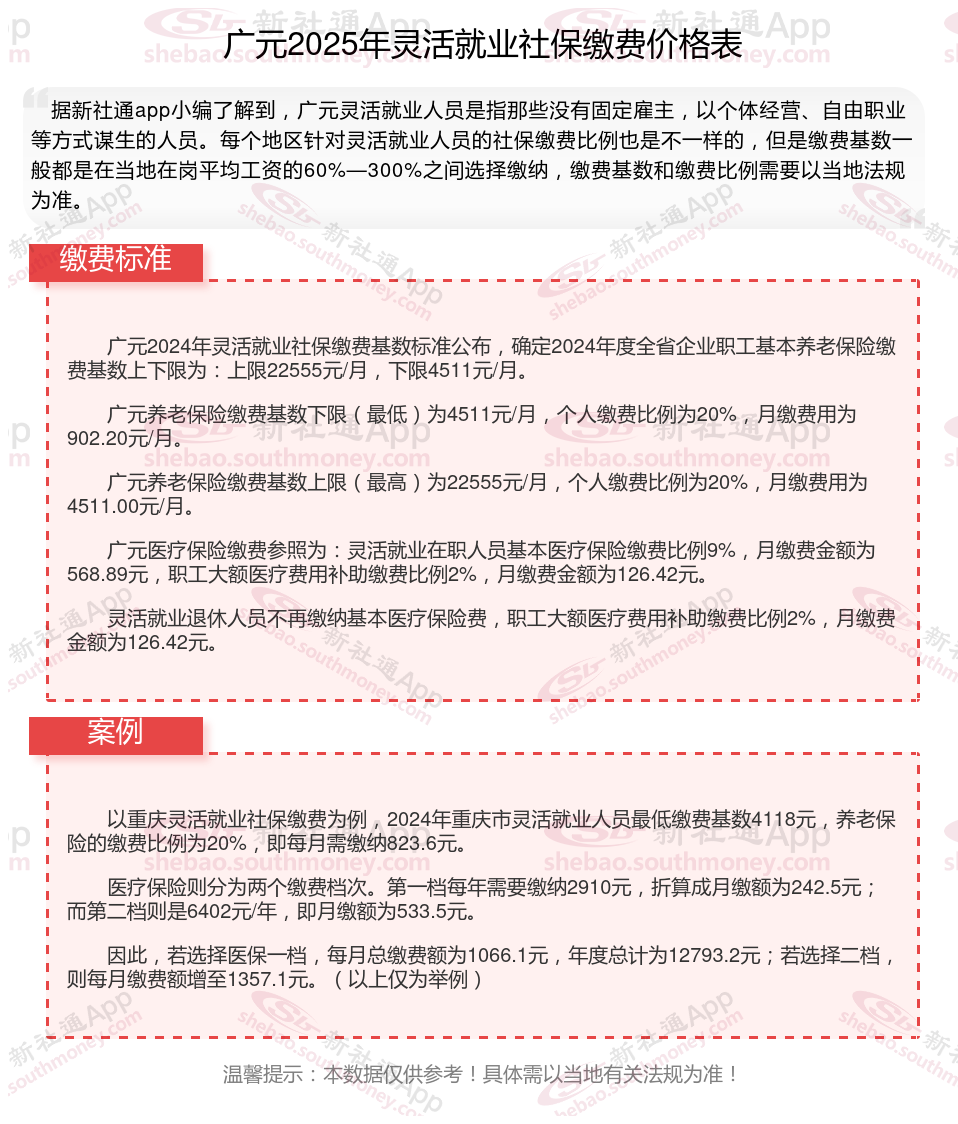 自由职业缴纳社保比例是多少?一般需要交多少钱一个月?根据新社通app-社保缴费查询工具提供的2025社保缴费标准详情数据: