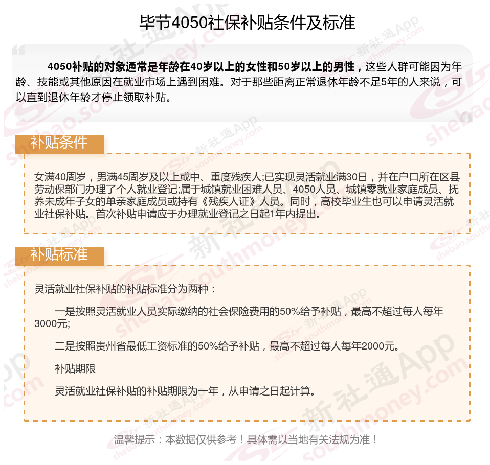 以上就是毕节4050灵活就业社保补贴的相关内容,欢迎关注新社通/下载新社通APP了解更多五险一金专业资讯。