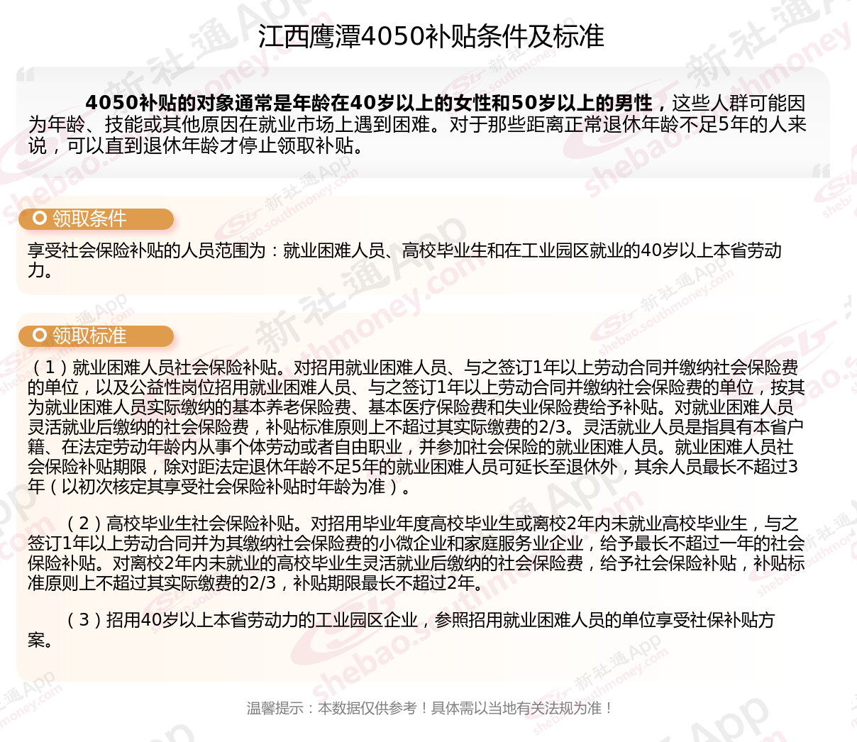 以上就是江西鹰潭4050灵活就业困难人员社保补贴的相关内容,欢迎关注新社通/下载新社通APP了解更多五险一金专业资讯。