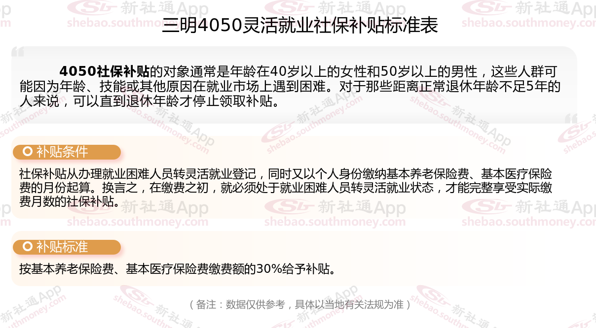 以上就是三明4050灵活就业社保补贴的相关内容,欢迎关注新社通/下载新社通APP了解更多五险一金专业资讯。