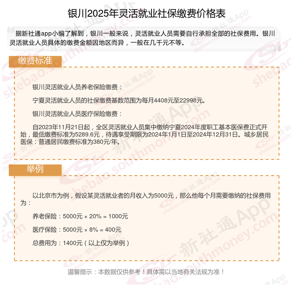宁夏灵活就业人员的社保缴费基数范围为每月4408元至22998元。