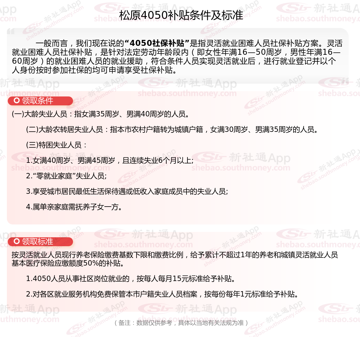 二、松原4050社保补贴标准及条件4050社保补贴,最新如下