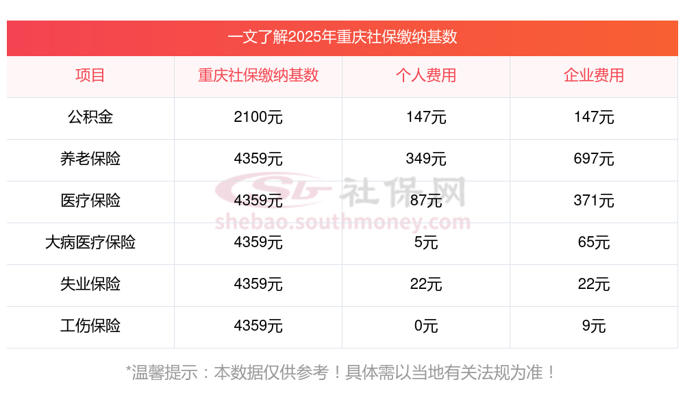 2025年重庆社保缴费最低基数及个人和单位具体是多少钱?下表是2025年重庆社保费用明细参考,新社通app-社保缴费查询工具提供的最新数据如下: