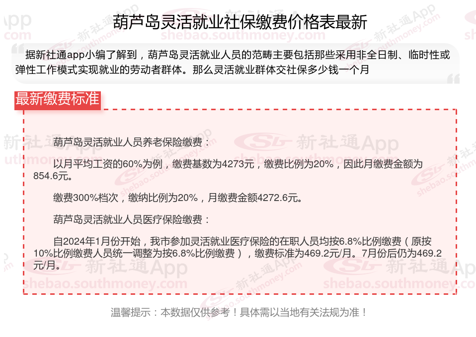 据新社通app数据显示,葫芦岛灵活就业养老保险缴费基数2024-2025年最新标准如下: