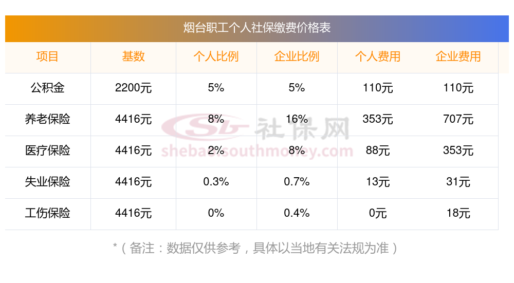 烟台社保多少钱一个月?下面和社保丫丫一起来看看烟台最低标准社保费用明细参考,新社通app-社保缴费查询工具提供的最新数据如下: