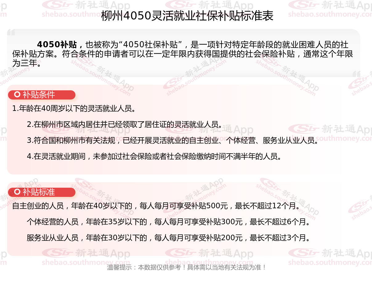 二、柳州4050社保补贴标准及条件2025年最新消息