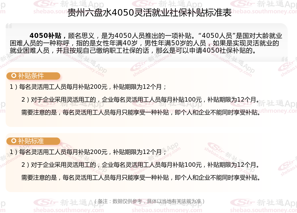 以上就是贵州六盘水4050灵活就业社保补贴的相关内容,欢迎关注新社通/下载新社通APP了解更多五险一金专业资讯。