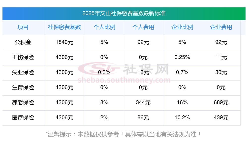 2025年文山五险缴费标准是多少,2025年文山社保缴费多少钱?下表是2025年文山社保费用明细参考,新社通app-社保缴费查询工具提供的最新数据如下:
