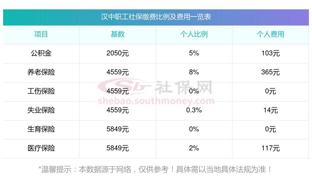 2025年汉中社保缴费价格,2025年汉中社保缴费多少钱?下表是2025年汉中社保费用明细参考,新社通app-社保缴费查询工具提供的最新数据如下: