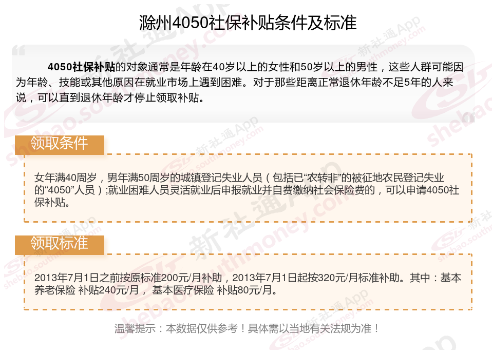 二、滁州4050社保补贴标准及条件4050社保补贴,最新如下