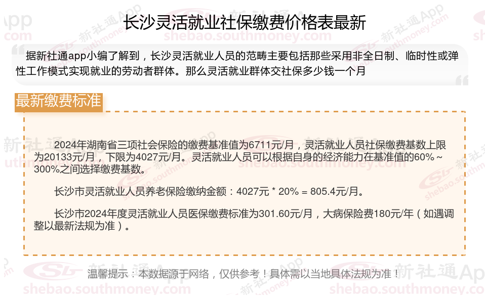 据新社通app数据显示,长沙灵活就业人员养老保险缴费基数2024-2025年最新标准如下: