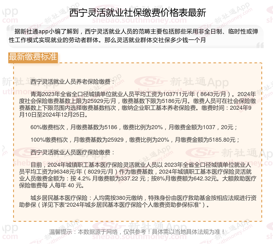 在西宁,那些选择独立参保的灵活就业者,包括个体户和自由职业者,现在有机会加入企业职工基本养老保险体系。根据法规,这些参保者可以根据自身情况,在全省城镇单位就业人员平均工资的60%至300%范围内,挑选最适合自己的缴费基数。那么,关于西宁2025年灵活就业人员的社保缴费标准是多少?以及每月需要缴纳的社保费用是多少,本文将为您提供最新的信息。