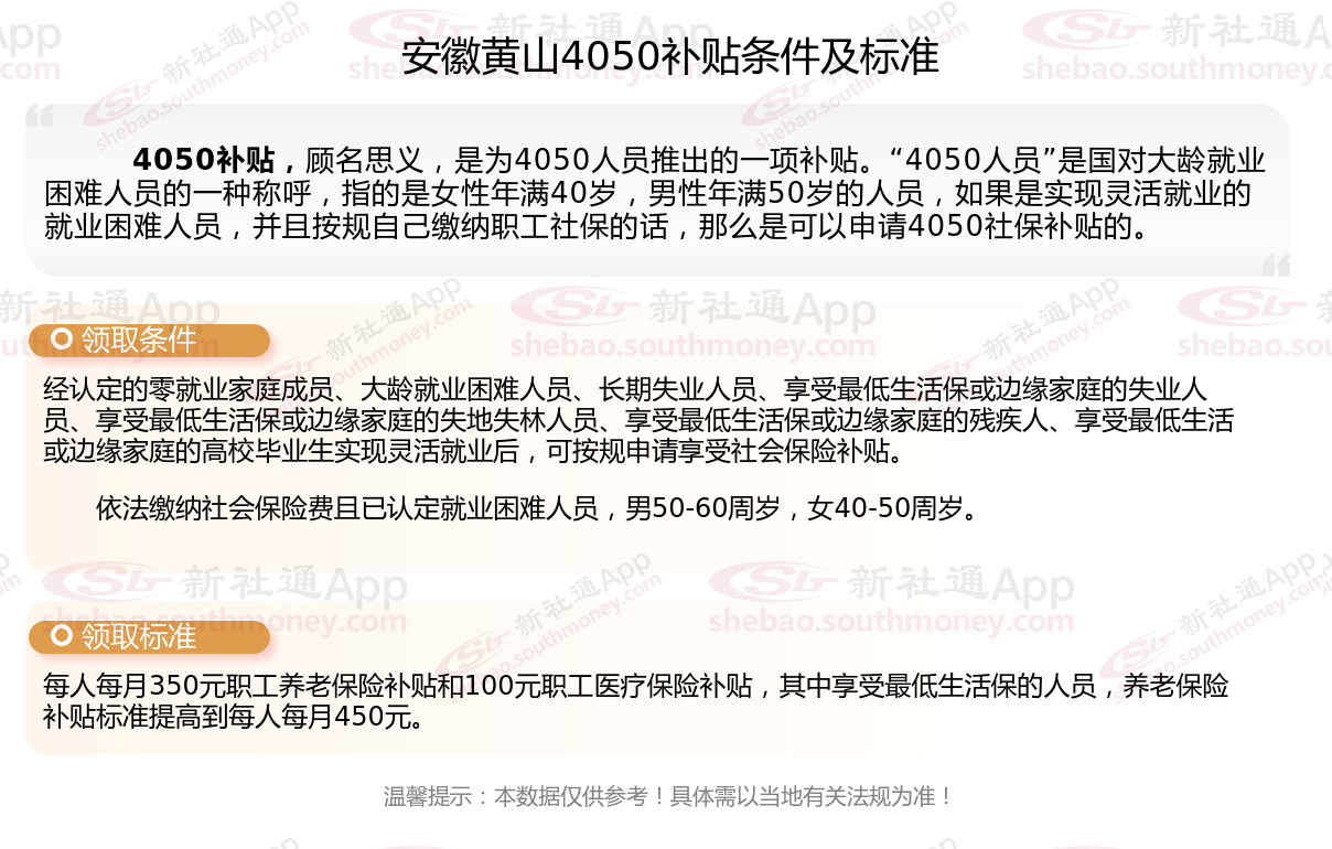 2025安徽黄山4050补贴主要针对的是年龄在40岁以上的女性和50岁以上的男性,这些人群通常因为年龄较大而面临就业困难。