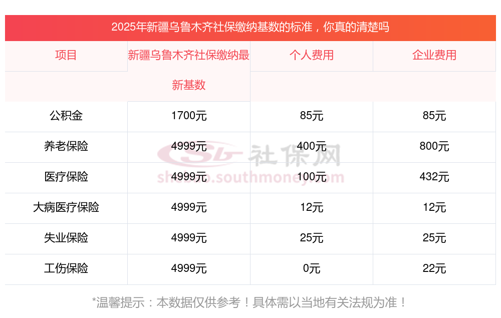 新疆乌鲁木齐的社保缴费情况,依据2025年最新的缴费标准,我们可以详细地进行如下说明。这些标准是根据新社通app-社保缴费查询工具提供的数据整理得出的: