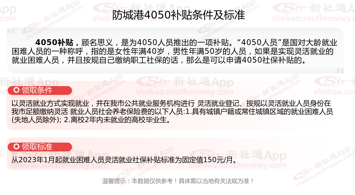 以上就是防城港4050灵活就业社保补贴的相关内容,欢迎关注新社通/下载新社通APP了解更多五险一金专业资讯。