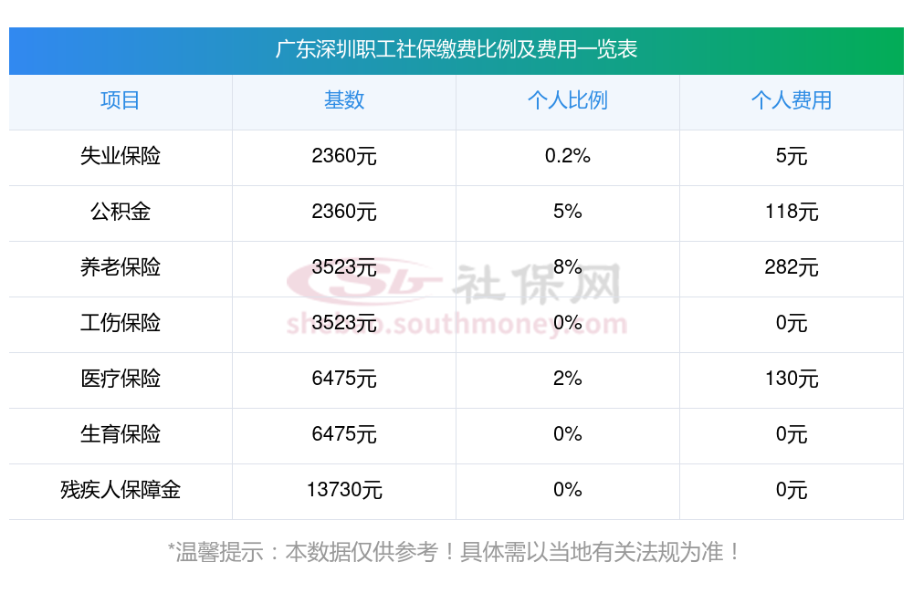 2025年广东深圳五险缴费标准是多少,2025年广东深圳社保缴费多少钱?下表是2025年广东深圳社保费用明细参考,新社通app-社保缴费查询工具提供的最新数据如下: