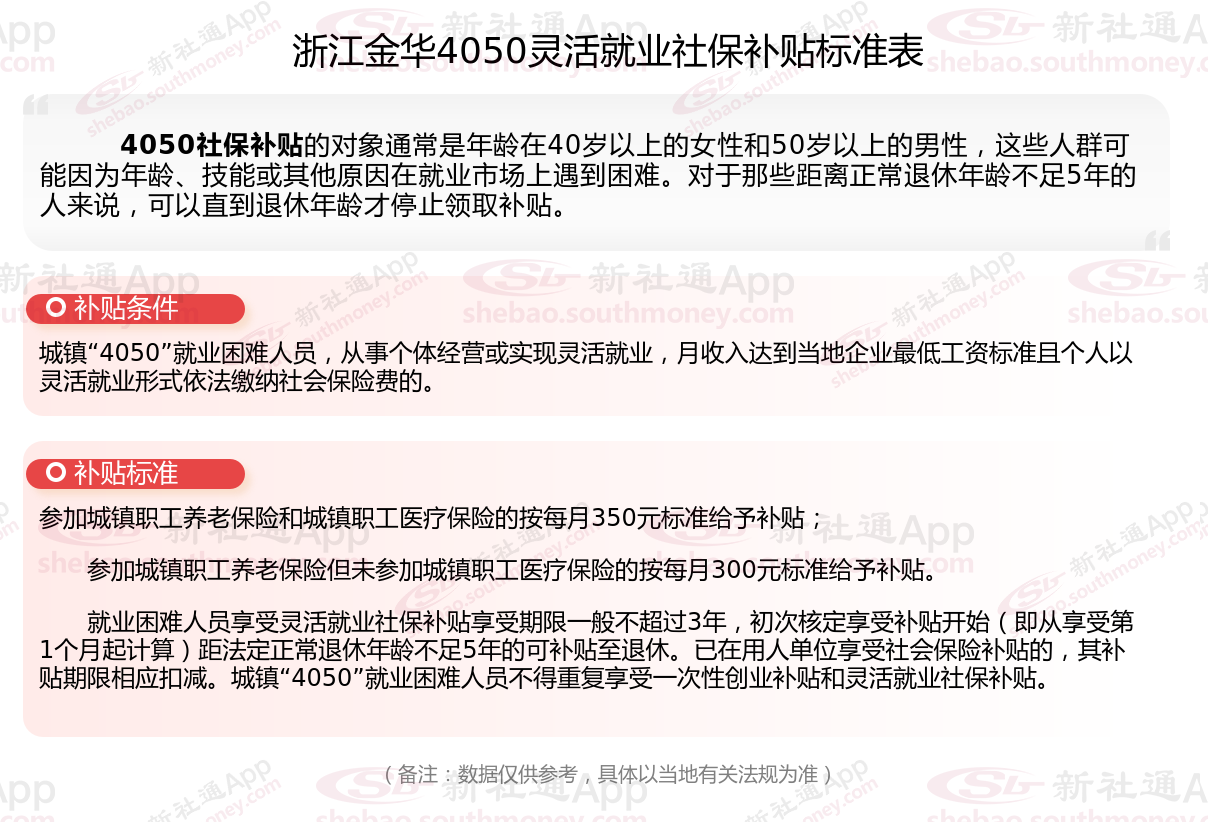 以上就是浙江金华4050灵活就业社保补贴的相关内容,欢迎关注新社通/下载新社通APP了解更多五险一金专业资讯。