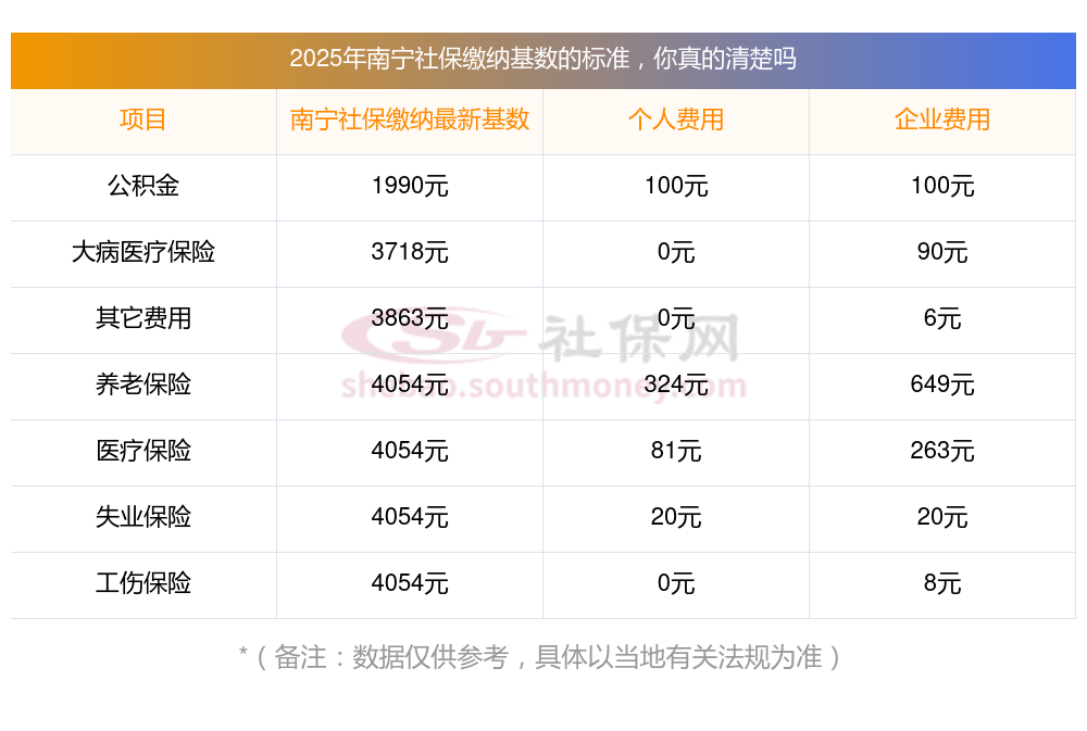 2025年南宁社保缴费多少钱?社保要缴够多少年可以退休?下表是2024-2025年南宁社保费用明细参考,新社通app-社保缴费查询工具提供的最新数据如下: