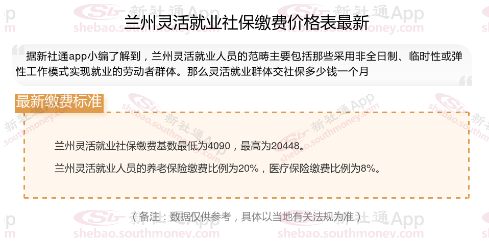 据新社通app数据显示,2024-2025年兰州灵活就业人员养老保险的缴费标准是根据缴费基数来确定的: