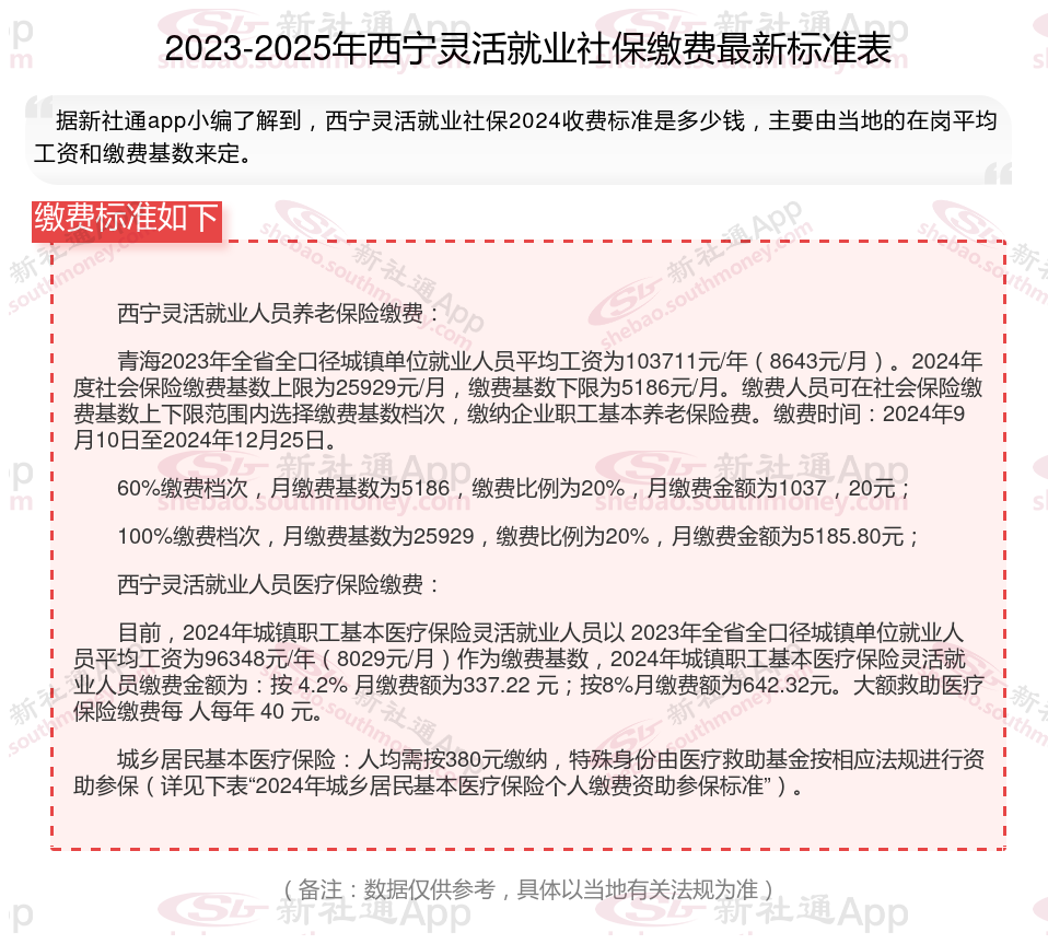据新社通app数据显示,2024-2025年西宁灵活就业人员养老保险的缴费标准: