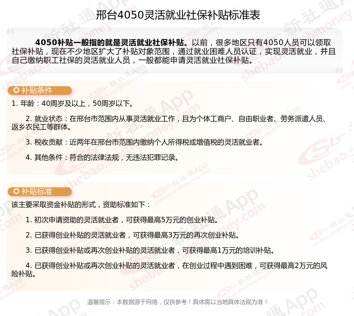 以上就是邢台4050灵活就业社保补贴的相关内容,欢迎关注新社通/下载新社通APP了解更多五险一金专业资讯。