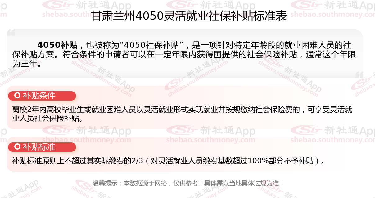 以上就是甘肃兰州4050灵活就业社保补贴的相关内容,欢迎关注新社通/下载新社通APP了解更多五险一金专业资讯。
