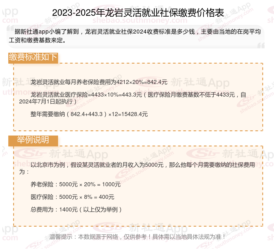 龙岩灵活就业人员基本养老保险缴费基数暂按不低于4212元;