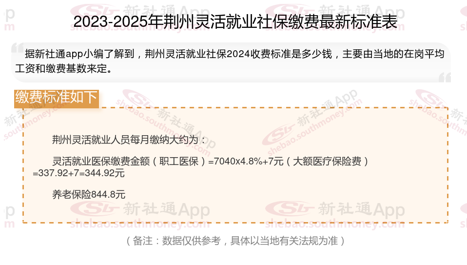 那么,自己社保是多少钱一个月 荆州灵活社保交多少钱?根据新社通app-社保缴费查询工具提供的2025社保缴费标准详情数据: