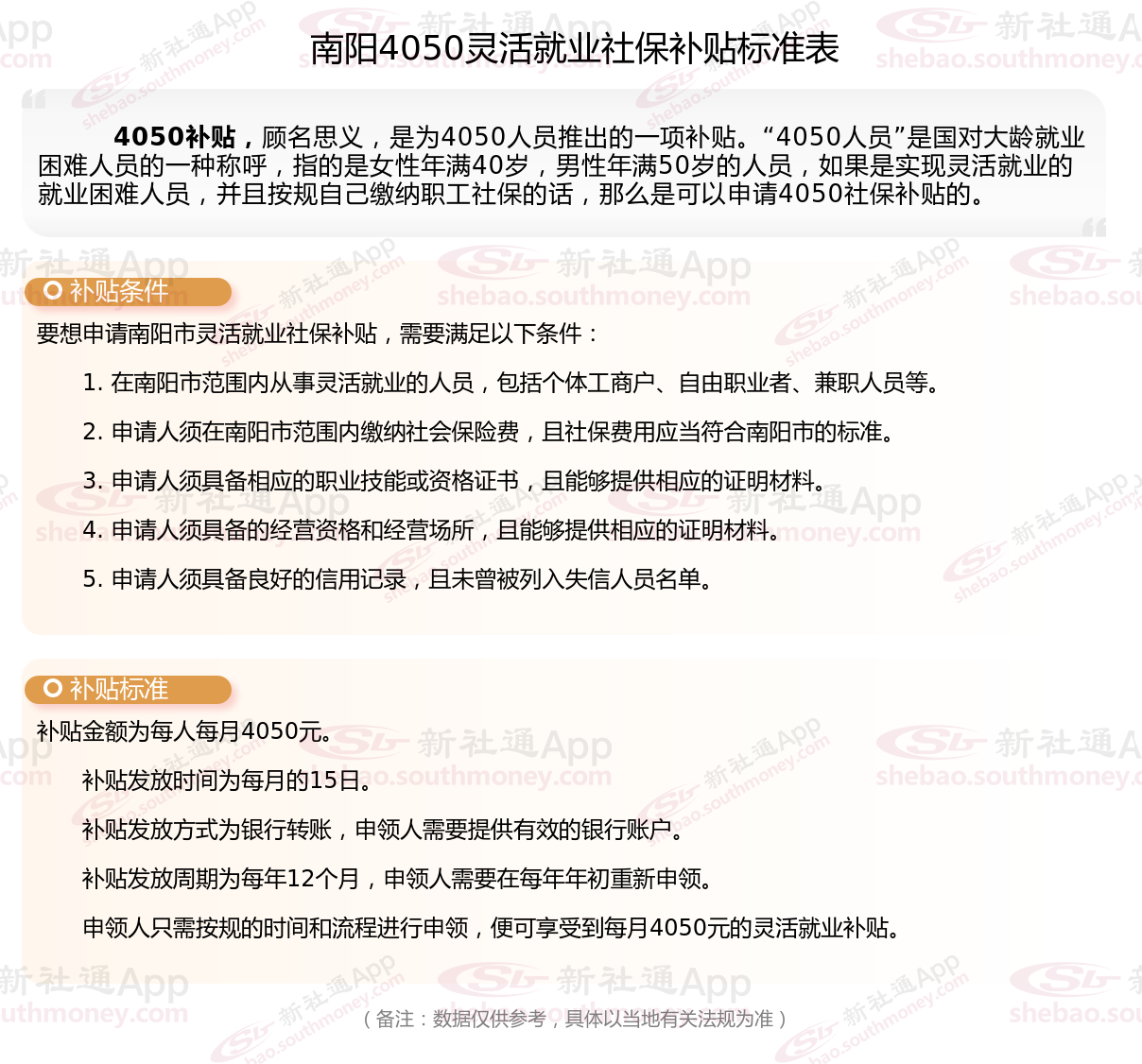 一、南阳4050社保补贴标准及条件2025年最新消息