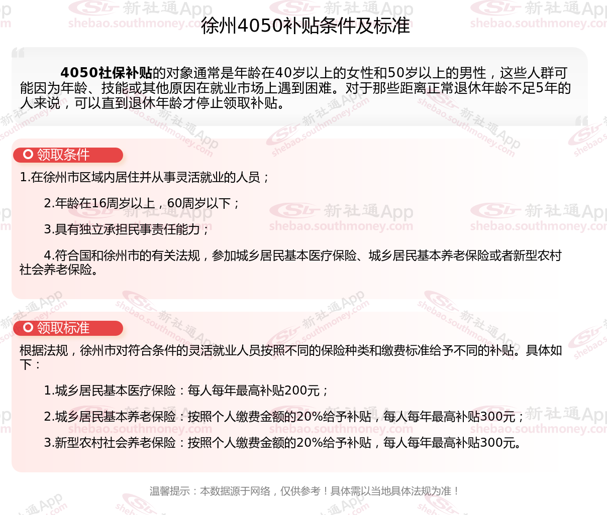 二、徐州4050社保补贴标准及条件2025年最新消息