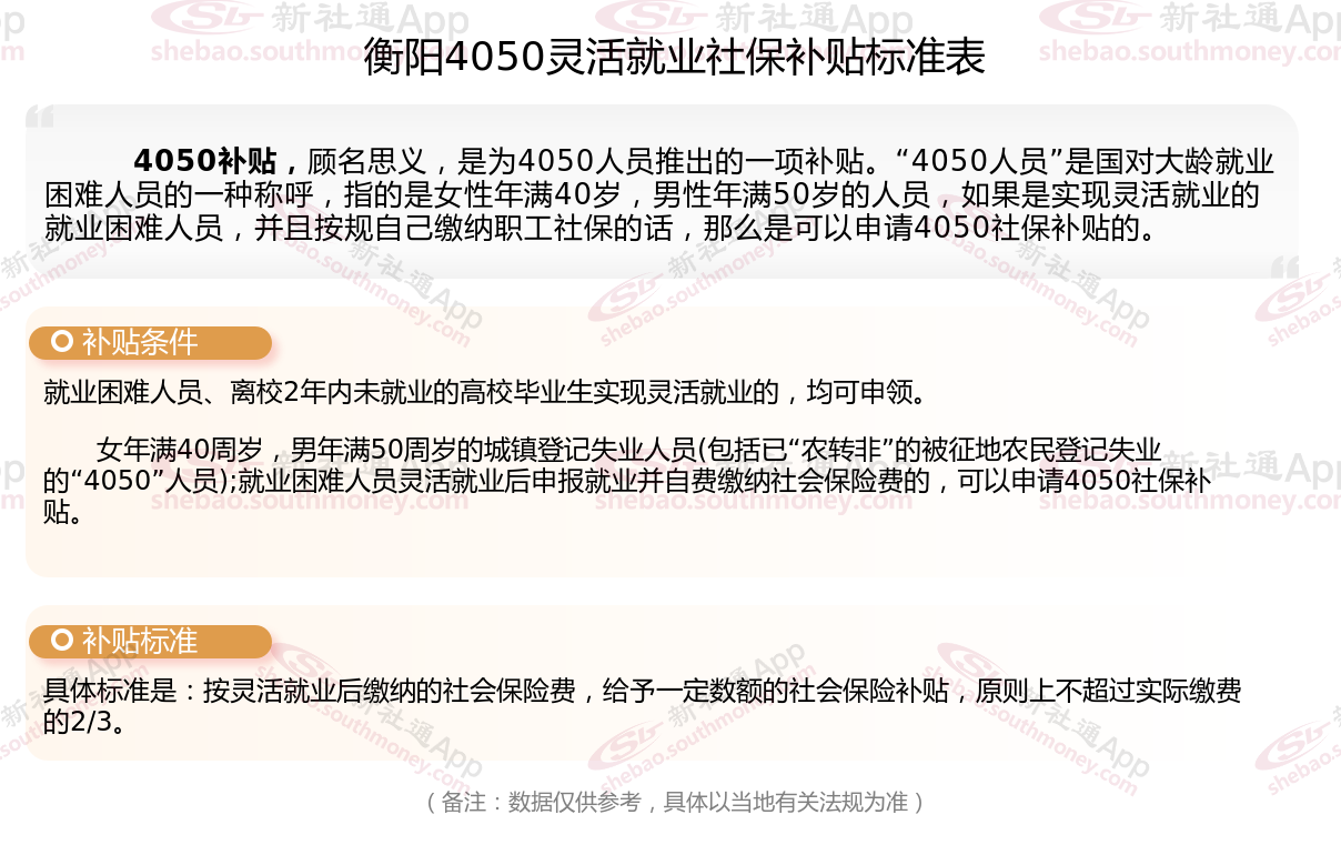 二、2025年衡阳4050社保补贴标准及条件是什么?