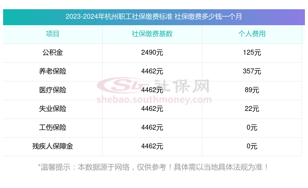 2025年杭州社保缴费多少钱?下表是2024-2025年杭州社保费用明细参考,新社通app-社保缴费查询工具提供的最新数据如下: