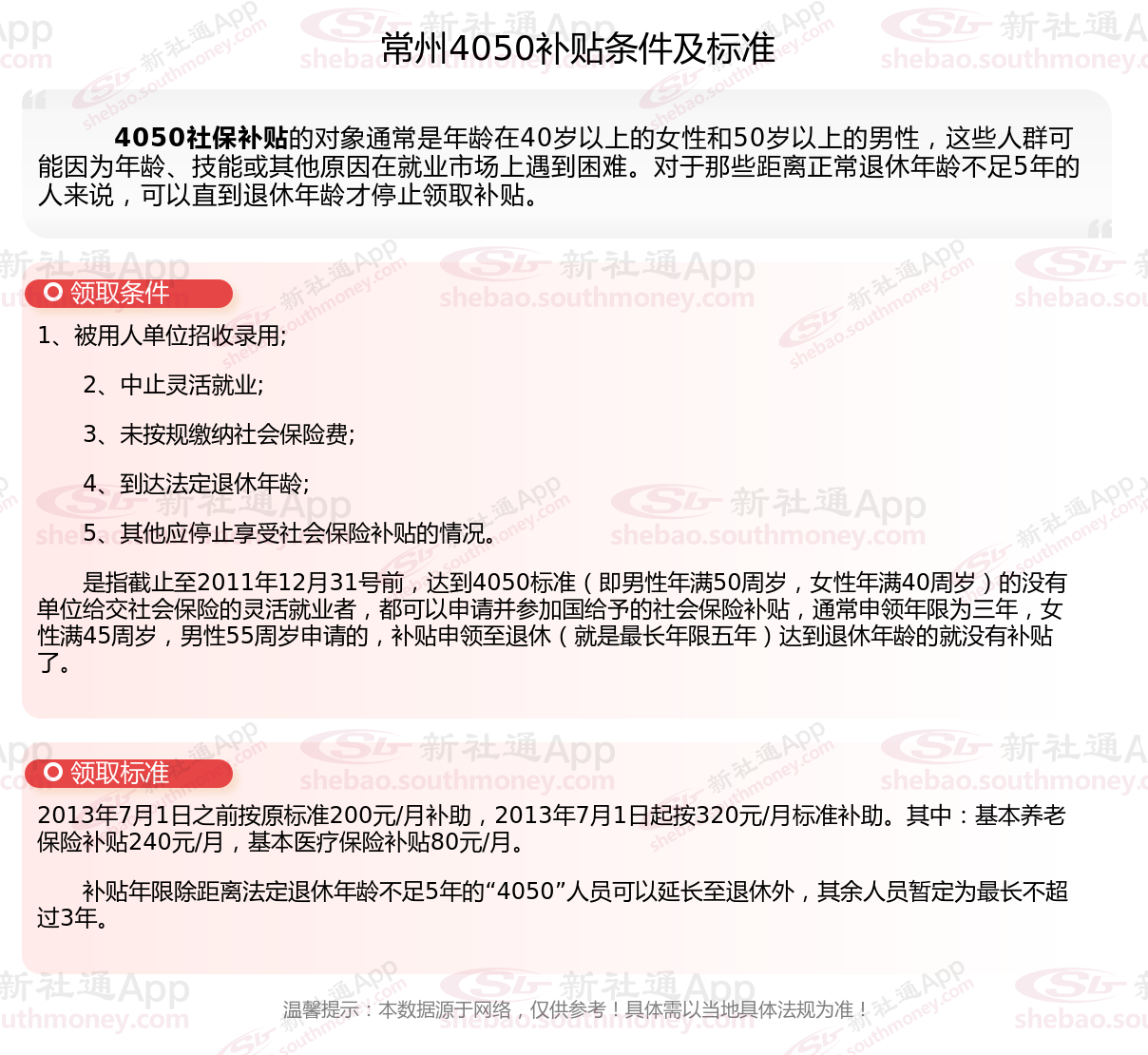一、2023-2024年常州4050社保补贴标准及条件是多少?