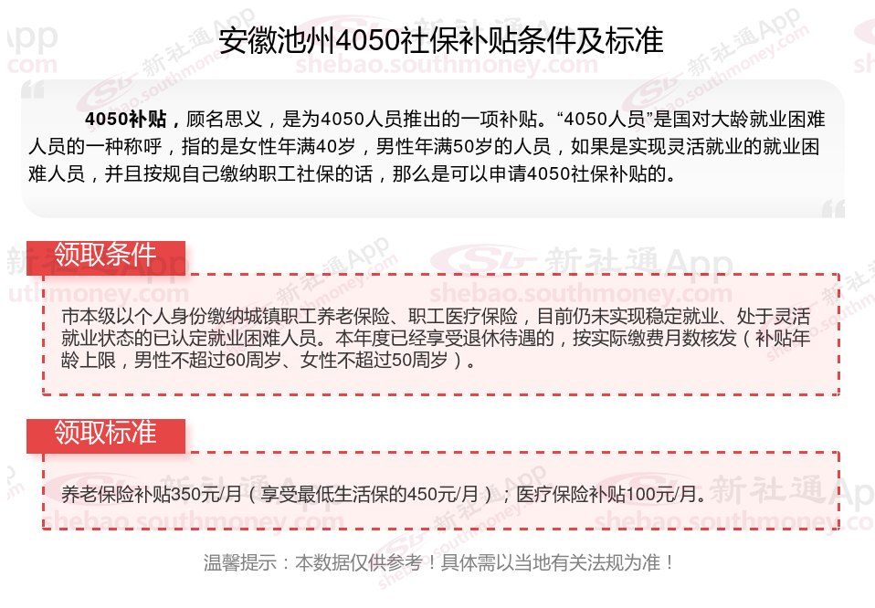 2025安徽池州4050补贴主要针对的是年龄在40岁以上的女性和50岁以上的男性,这些人群通常因为年龄较大而面临就业困难。