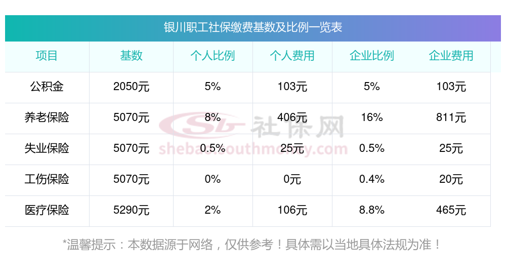 银川社保缴纳比例公司和个人按照以下方式计算?: