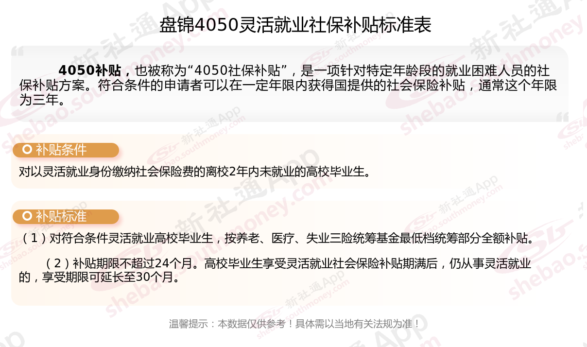 二、盘锦4050社保补贴标准及条件2025年,最新如下