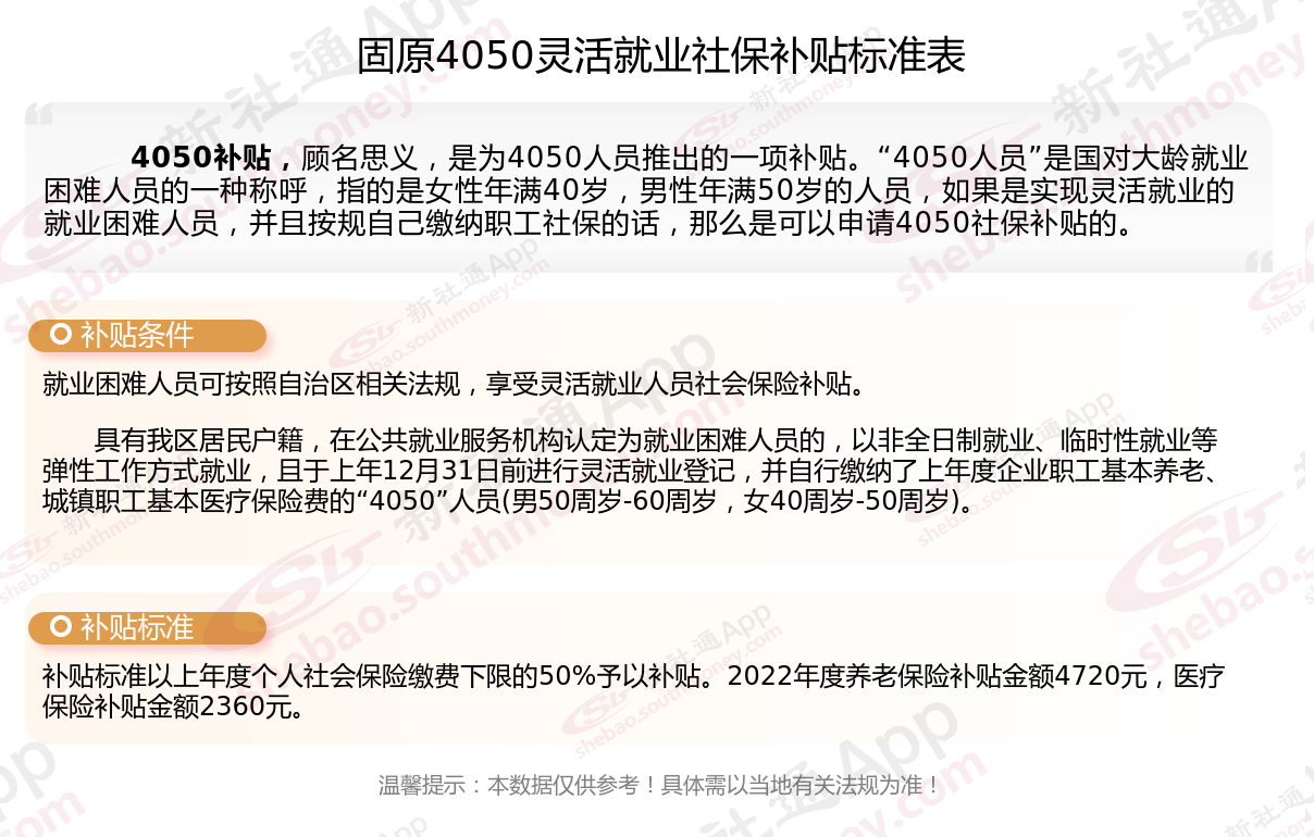 以上就是固原4050灵活就业社保补贴的相关内容,欢迎关注新社通/下载新社通APP了解更多五险一金专业资讯。