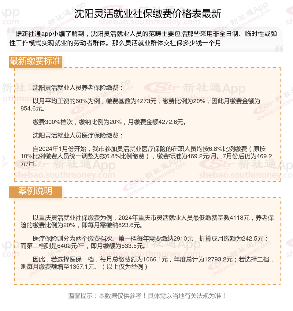 据新社通app数据显示,2024-2025年沈阳灵活就业人员养老保险的缴费标准: