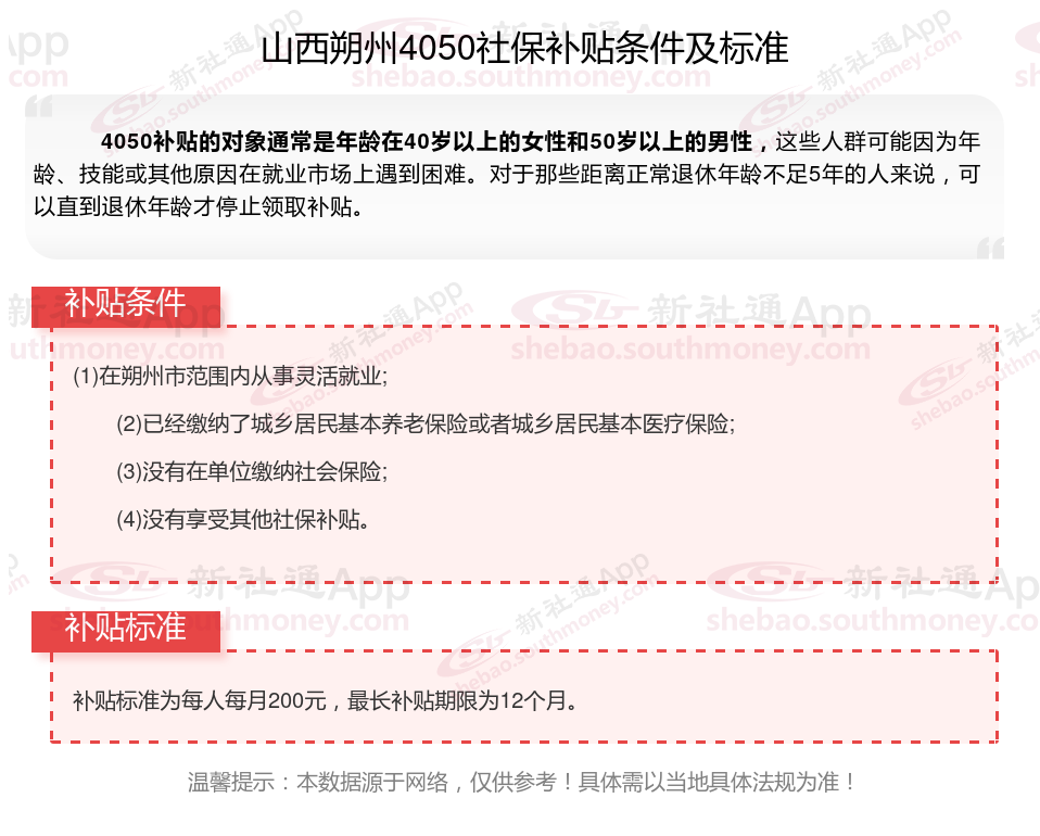 以上就是山西朔州4050灵活就业社保补贴的相关内容,欢迎关注新社通/下载新社通APP了解更多五险一金专业资讯。