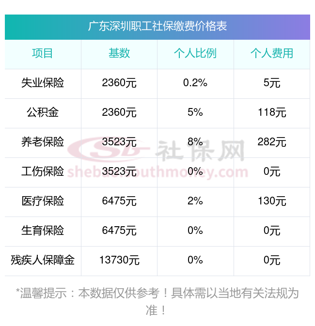 2025年广东深圳社保缴费多少钱?下表是2023-2024年广东深圳社保费用明细参考,如下: