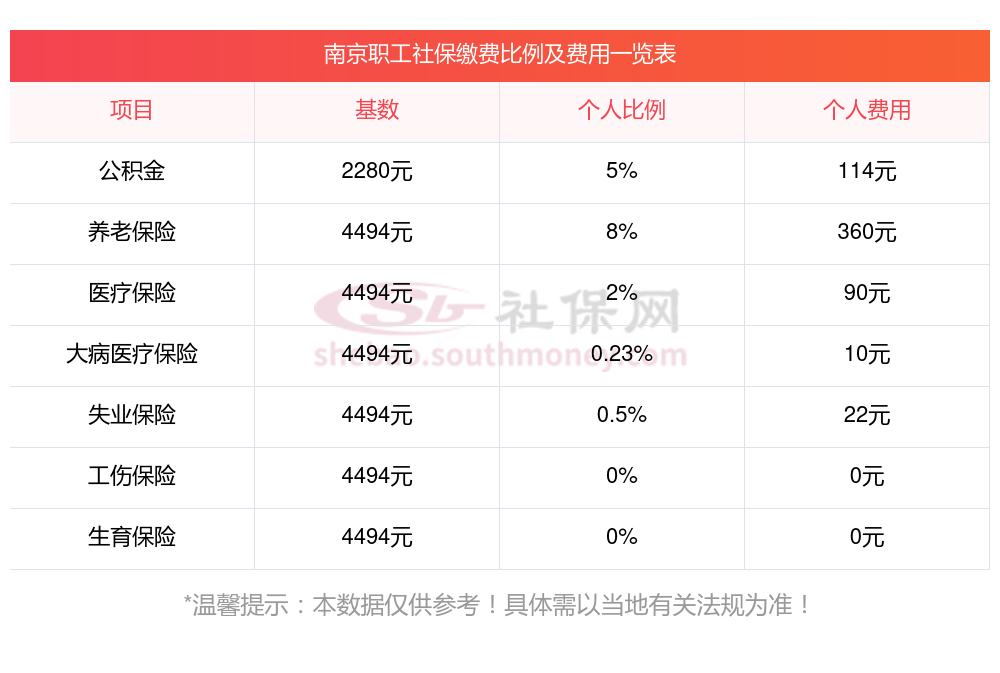 2025年南京社保缴费多少钱?下表是2024-2025年南京社保费用明细参考,新社通app-社保缴费查询工具提供的最新数据如下: