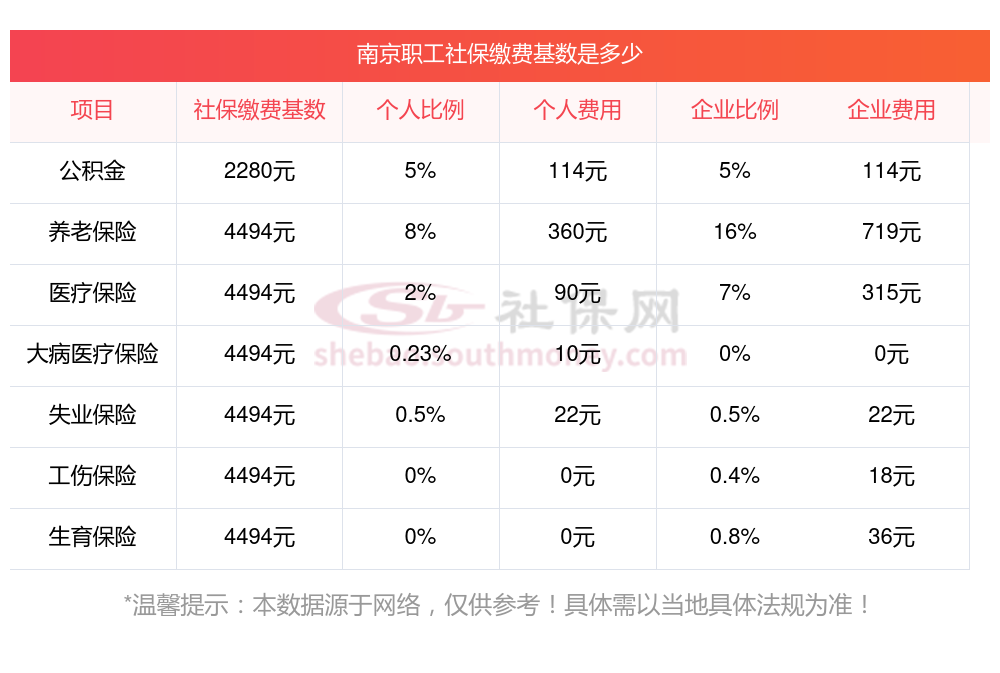 2025年南京社保缴费价格表最新消息?南京社保交多少钱一个月?下表是2024-2025年南京社保费用明细参考,新社通app-社保缴费查询工具提供的最新数据如下: